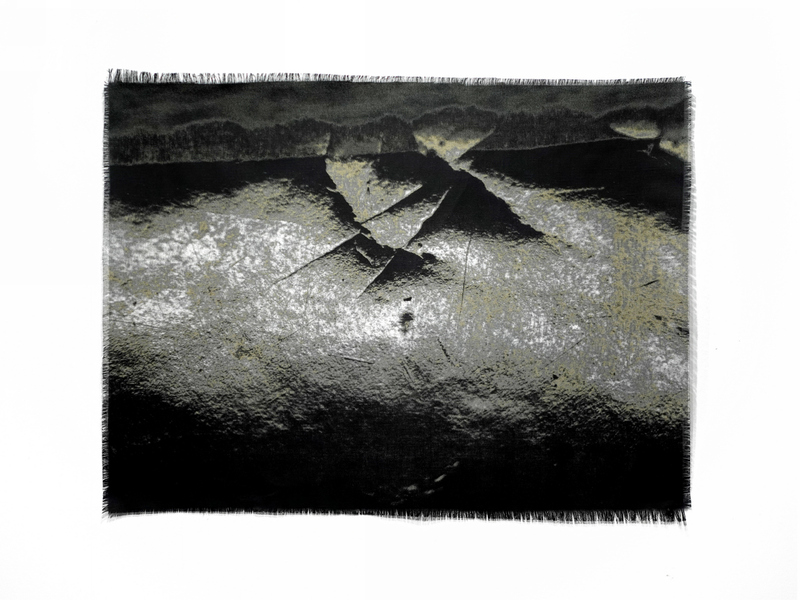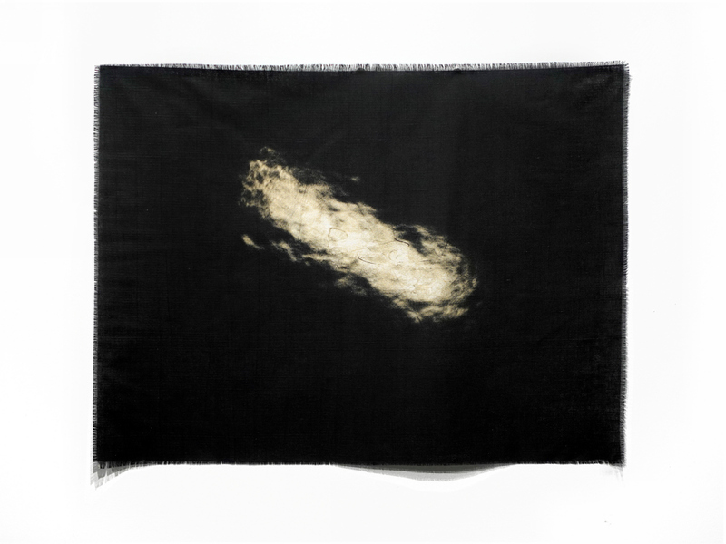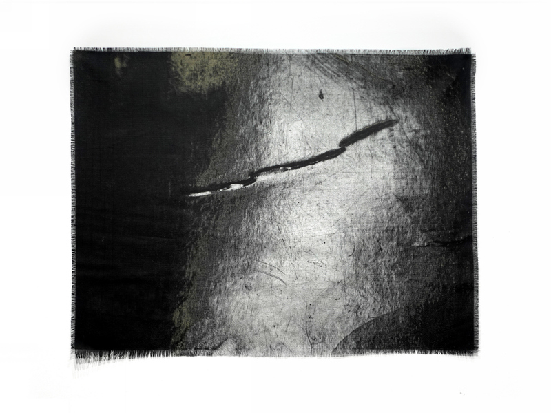 Отдельные повреждения заметны сразу, другие видны лишь при внимательном и пристальном взгляде, когда держишь фотографию в руках под определенным углом, и вновь исчезают при сканировании. Видимыми и те и другие становятся с помощью камеры и макросъемки, напоминая о способности фотографии и оптических механизмов проявлять скрытое и незамеченное. Вся серия делает главным объектом внимания не просто поверхности, но саму структуру изображения, меняя его содержание, превращая в абстракцию и уподобляя научной съемке под микроскопом. Изображения структур и фрагментов, связей и их нарушений отсылают не к литературной, а скорее к биологической метафоре памяти. Напечатанные методом шелкографии на ткани, они позволяют утратам обретать новую материальность, собственные образы, не поддающиеся превращению в истории, но акцентирующие тактильность и физическое соотношение с изображением.